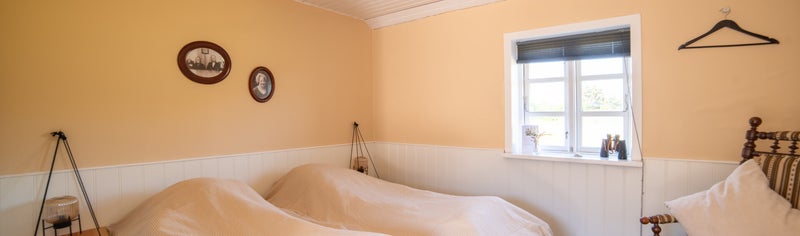 Storspove is the smallest, but very cozy single room of the guesthouse. It is located on the first floor and faces east, with a beautiful view over the open fields. The room has a small sink, while the toilet and bathroom are shared with three other rooms. There are two small bath/WC rooms in the hallway.The room dates back to the original period of the guesthouse and has retained its authentic charm. The atmosphere is reminiscent of what one finds in a classic basic hotel – simple, warm, and homey.